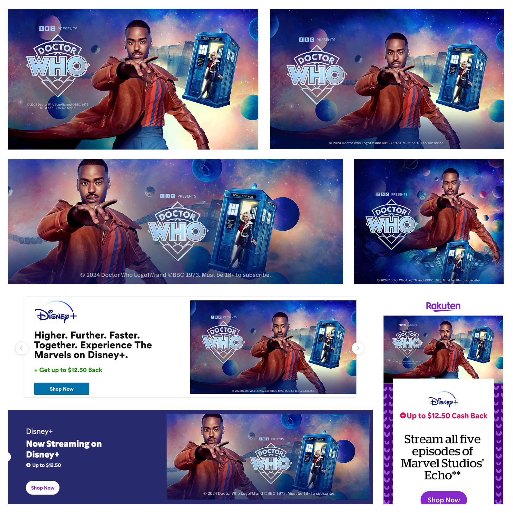 Holidays on Disney+ (CTV examples) had many moving parts in their branded static toolkit so a lot of the placements were like doing collage.
