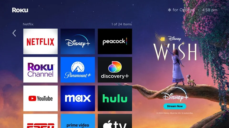 The Homepage Takeover is a prominent, premium ad experience that immerses content and navigation features in an IP. Most key art isn’t delivered in a format that automatically translates to the Roku interface, so a lot of compositing is required to cleanly fill the background. This was the case with all three examples. Disney’s Roku Takeover featuring The Little Mermaid was one of our highest-performing ads to-date, yielding record signups and engagement.